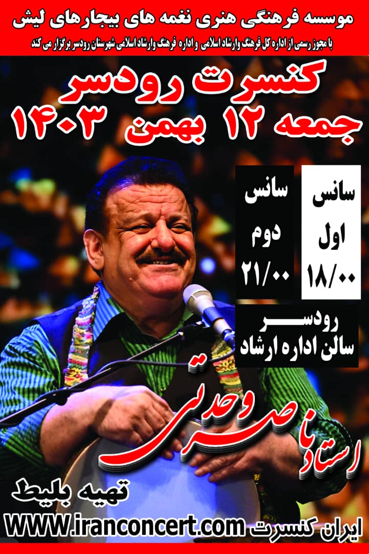 کنسرت بزرگ "استاد ناصر وحدتی" جمعه ۱۲ بهمن ۱۴۰۳ در رودسر برگزار می شود.